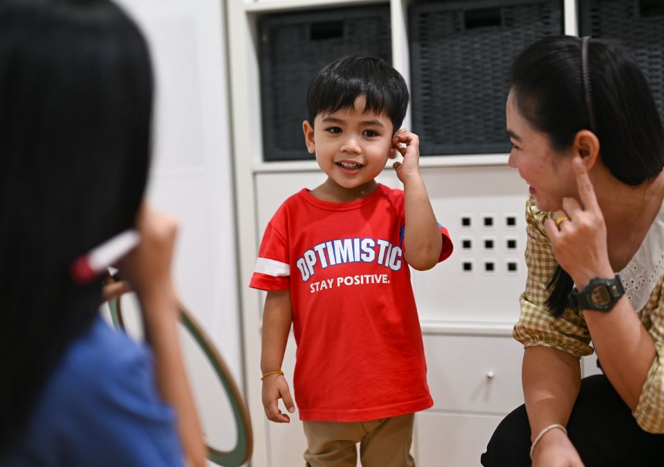 ให้นำหนังสือนิทานใส่ลงไปในกระเป๋าใส่ของจิปาถะของลูก ในช่วงที่รอคิวนัดหมอ นัดตรวจการได้ยิน หรือรอฝึกพูดนี้ คุณสามารถอ่านหนังสือให้ลูกฟังได้